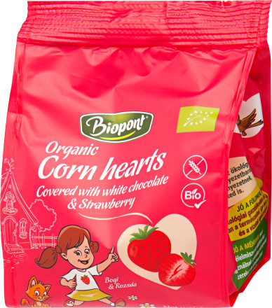 Éppen ezért alkottuk meg Bio fehércsokoládés-epres extrudált kukoricát ezúttal egy igazán különleges és finom epres ízesítéssel.