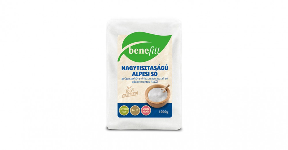Nagytisztaságú Alpesi só, gyógyszerkönyvi tisztaságú asztali só , adalékmentes NACL. Összetétel: 100% alpesi só (NACL)