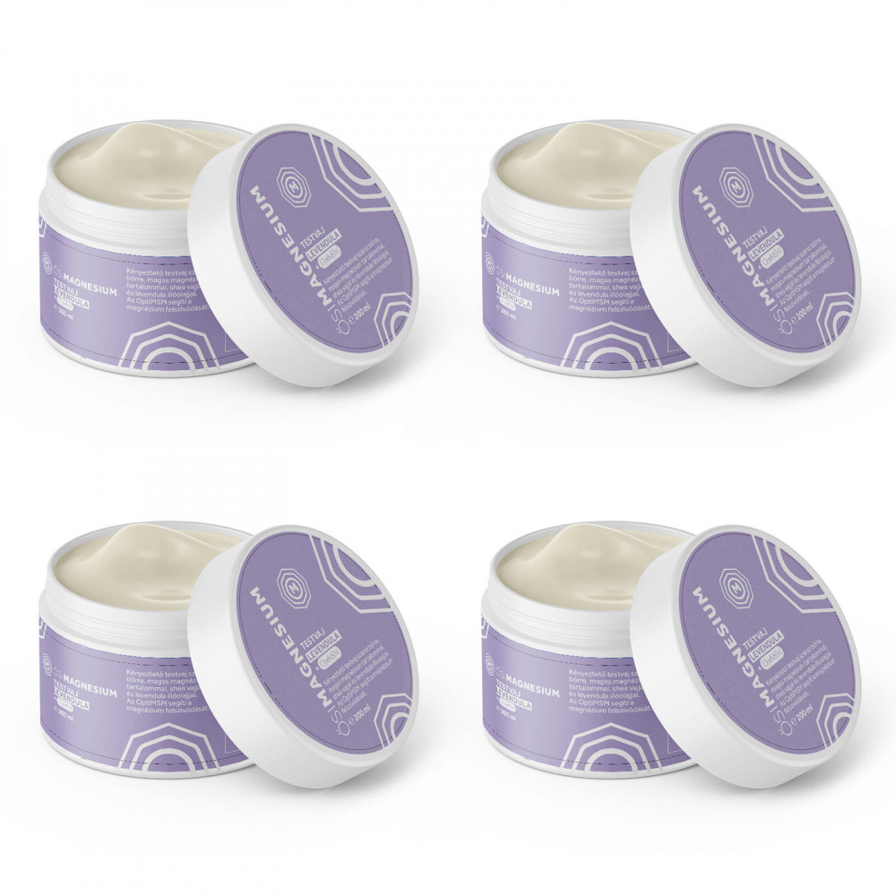 A természetes összetevőkből álló, gazdag, krémes textúrájú testvaj nagy dózisú, bőrön át felszívódó magnéziumot tartalmaz, a benne lévő OptiMSM pedig segít az ízületek védelmében és regenerációjában. A napi magnéziumpótlás mellett kiváló bőrápoló is a benne lévő édesmandula olajnak és shea vajnak köszönhetően. Kellemes illatáról tiszta levendula illóolaj gondoskodik. Az Ősi Magnézium levendulás testvaj gyors és természetes megoldás szervezete magnéziumszintjének biztosítására. Jól kenhető, gyorsan beszívódik, nem hagy maga után zsíros érzést. A, E és F vitaminokban, Omega-9 zsírsavakban gazdag édesmandula olajat és shea vajat tartalmaz, a benne lévő esszenciális levendula illóolaj segít ellazulni és illatossá varázsolja a bőrt.