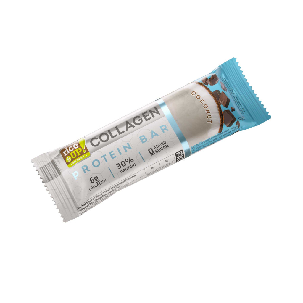 Kollagénes fehérje szelet kókuszos ízesítésű hozzáadott cukor nélkül.