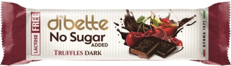 Dibette NAS LAKTÓZMENTES trüffelkrémmel töltött étcsokoládé édesítőszerrel, erittel 25g. Szóját,egyéb dióféléket és glutént is feldolgozó üzemben készült !
