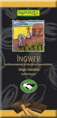 Összetétel: barna nádcukor*, kakaómassza*, kandírozott gyömbér 15% (gyömbér*, nádcukor*), kakaóvaj*, bourbon vanília*.