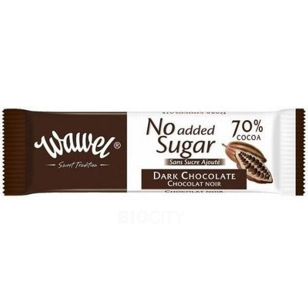 WAWEL CUKORMENTES ÉTCSOKOLÁDÉ 70%. Édesítőszerrel készült, 70%-os kakaótartalmú keserű csokoládé (étcsokoládé). Diabetikusok, cukorbetegek is fogyaszthatják, diabetikus édesség, csoki. Cukormentes.