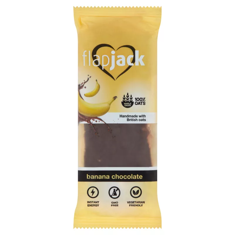 Banánchips-szel készül, csokoládé ízű bevonattal a tetején. A FlapJack szeletek magas zab- és rosttartalmának köszönhetően kiváló kiegészítője az egészséges táplálkozásnak. Vegetáriánusok számára is ajánlott.