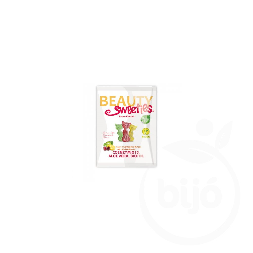 Nassolj a szépségért! Savanyú gyümölcsös gumicukor cicák 25 % gyümölcslével, Q10-koenzimmel, aloe verával és biotinnal.