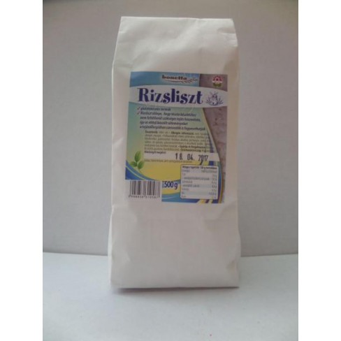 BONETTA RIZSLISZT: Finomra őrölt liszt, melyet hosszúszemű rizsből állítanak elő. Sűrítésre és tészták készítéséhez használják fel. A rizsliszt jól használható porhanyós, omlós tésztákhoz, de galuska, palacsinta, krémleves is készülhet belőle.