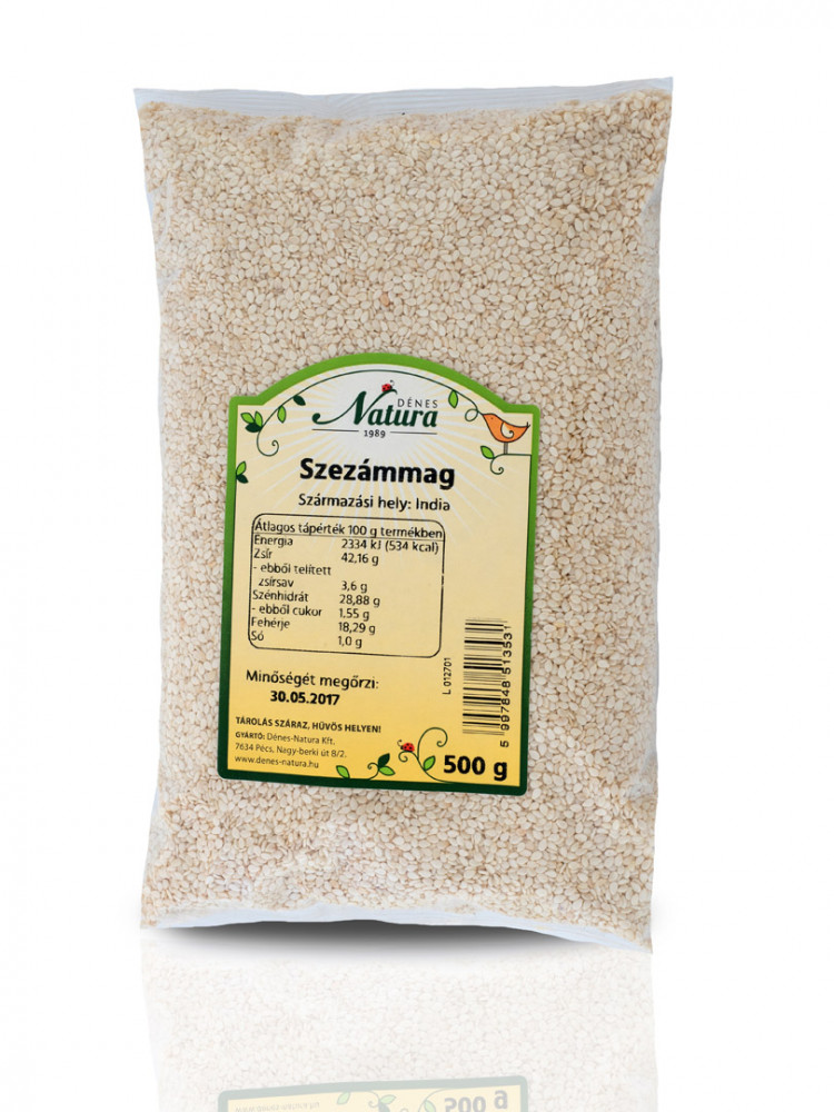 A szezámmag kalciumban sokkal gazdagabb, mint a tej, a sajt, vagy bármelyik olajos mag. Telítetlen zsírsavakban gazdag, 55 %-a olaj. Kitűnő természetes forrása a B vitaminoknak, inozitolnak, kolinnak és az E vitaminnak. Kiemelkedő a lecitintartalma, továbbá szerves foszfortartalma, amely az agy és az idegszövetek legfőbb építőköve.