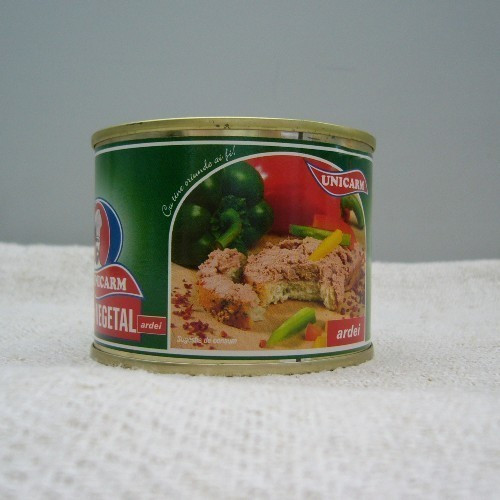 Unicarm növényi pástétom paprikás 200g. Összetétel: víz, növényi olaj (30%), szójafehérje, zselésítőanyag (karragén), keményítő, só, fűszerek, ízfokozó(nátrium-glutamát), szárított paprika (0,4%), természetes színezék: karamell, zöldség és gyümölcskivonat. Vegetáriánus, vega ékezéshez is kiváló. Remek húspótló