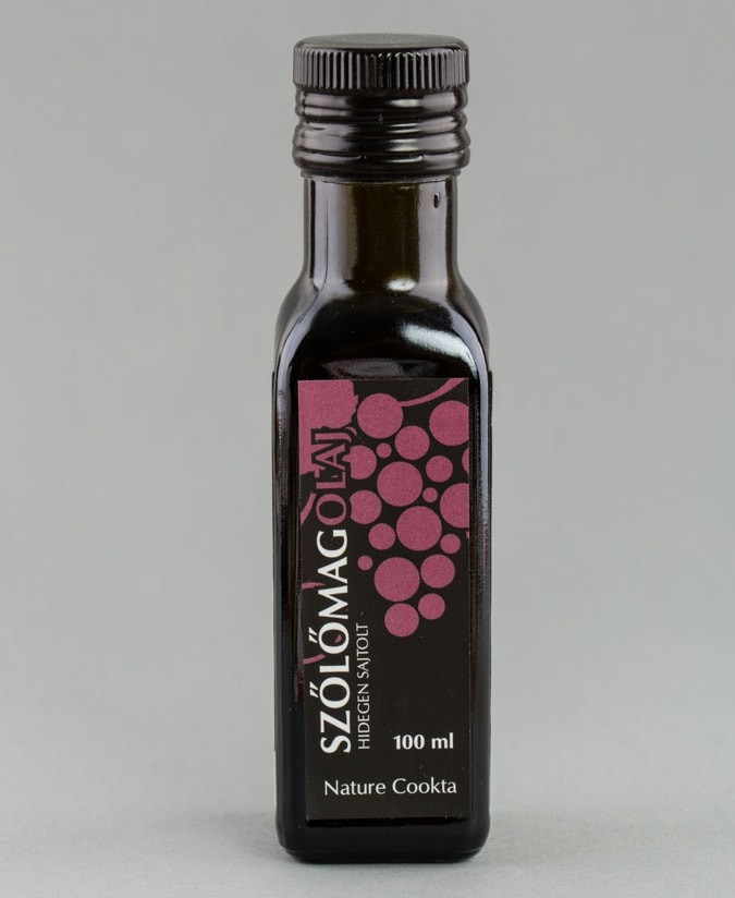 Az ősz gyümölcse az egyik legsokoldalúbb alapanyag. Az önmagában is ízletes csemege minél sötétebb színben pompázik, annál hasznosabb a szervezet számára. Magjának kivonata az olívaolajon kívül a másik legtöbb színben pompázó olaj.A Nature Cookta Szőlőmagolaj könnyed ízű, különleges aromájú. Napérlelte szőlőszemekből, kíméletes eljárással, hideg sajtolással készül. A magokat összezúzzák, majd préselik. Tisztításához ülepítik és szűrik. Egyedi, érett szőlőre emlékeztető illatát főzésnél, sütésnél hosszú idő után is megőrzi.