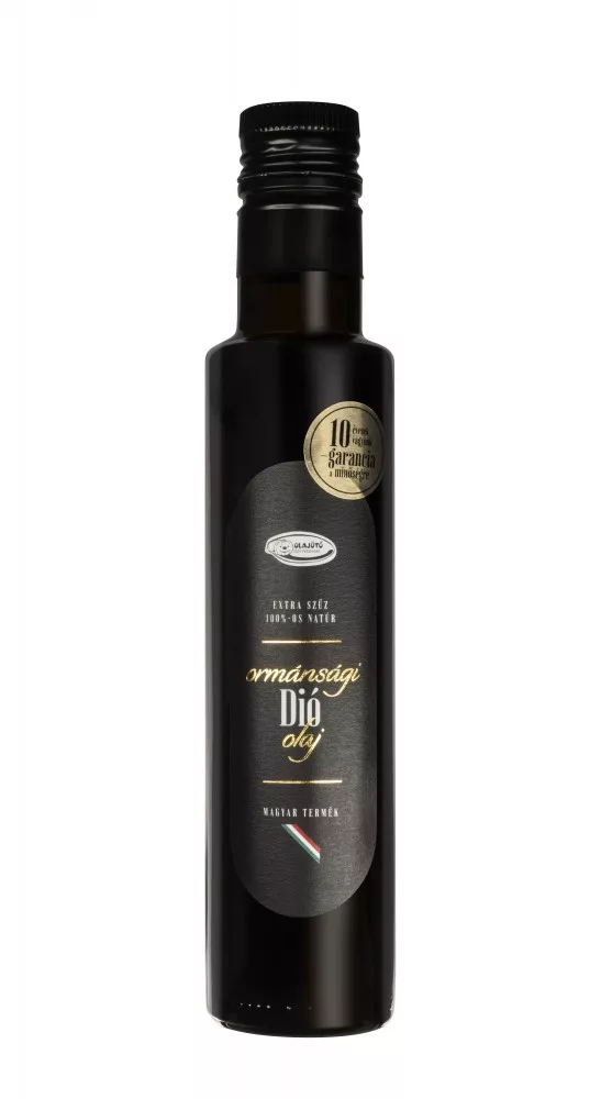 inolsavat, telítetlen zsírsavakat tartalmazó , koleszterin szint csökkentő, szív-és érrendszerre jótékony hatású hidegen sajtolt dióolaj. Hidegen sajtolt dióolaj sötét sárgás, könnyed, enyhén fanyar ízű olaj, vasban és cinkben gazdag, koleszterinszintre jótékony hatással van.