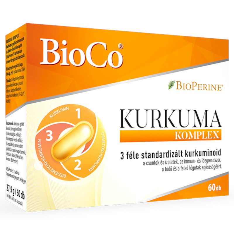 A BioCo KURKUMA KOMPLEX BioPerine®-nel ötvözi a magas hatóanyagtartalmat és a tisztaságot. A növényi kivonatok magas hatóanyagot tartalmazó koncentrátumok, melyeket jelentős mennyiségben zártunk színezékmentes, víztiszta növényi kapszulába.