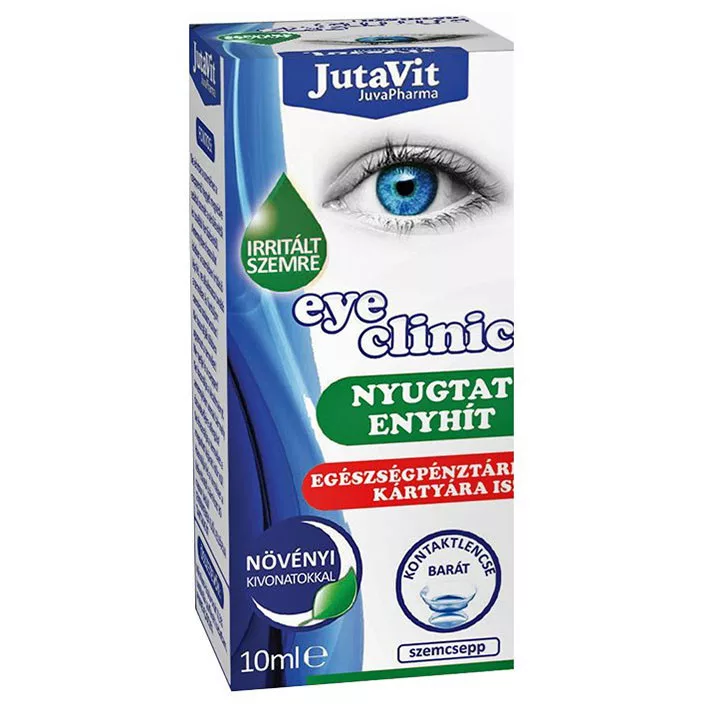A JutaVit EyeClinic szemcsepp kíméletes megoldást kínál az irritált, érzékeny szemek ápolására. Használata segíthet enyhíteni a mindennapi környezeti hatások – például por, füst vagy légkondicionáló – okozta kellemetlenségeket, miközben támogatja a szem természetes komfortérzetét.