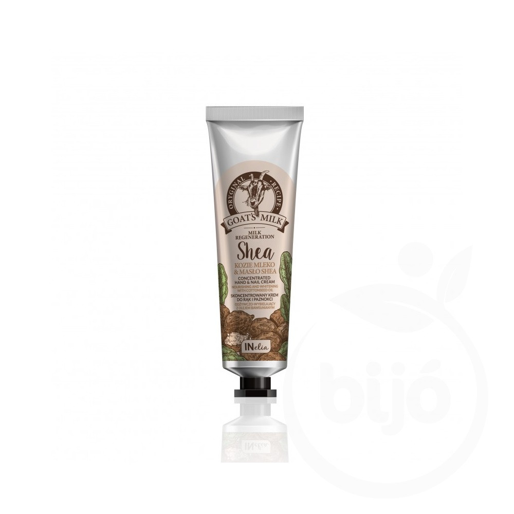 Tápláló és fehérítő kéz-és körömkrém koncentrált pamutolajjal, száraz és nagyon száraz bőr mindennapi ápolására tervezték, ami hajlamos a repedezésre. Hidratálja, regenerálja és táplálja a kéz bőrét, gondozza a körmöket. Javítja és lágyítja a bőr legfelső rétegét. Világosítja a bőr elszíneződését. Kiegyenlíti a bőrszínt, és egészséges, természetes megjelenést kölcsönöz a kéznek és körmöknek. A krém kecsketejfehérjéket tartalmaz, ami védőhatással bírnak, megnyugtatják az irritációt és felgyorsítja a természetes regenerációt. A- és E-vitaminban és F-vitaminokban gazdag Shea vaj felelős a bőr mély hidratálásáért. Erősíti a sejteket, javítja a rugalmasságukat, természetes fényvédőként is hat. A gyapotolajnak köszönhetően erős gyulladásgátló és allergiaellenes hatása van, aktívan támogatja az irritált bőr regenerálódását és újjáépítését. A krém tökéletesen felszívódik és mélyen behatol a bőrbe, tökéletesen hidratál és táplál.