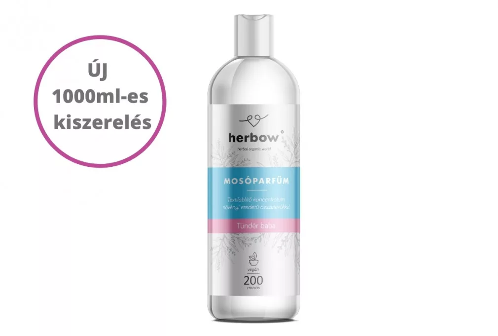 A Herbow mosóparfüm Tündér baba egy innovatív, növényi alapú textilápoló, amely egyesíti a mosóparfüm és az öblítő előnyeit. Finom, babapúderes és kamillás illata a tisztaság és frissesség érzetét kelti, miközben segíthet a ruhák puhaságának és kellemes tapintásának megőrzésében. Koncentrált formulájának köszönhetően gazdaságos választás a mindennapi mosáshoz.
