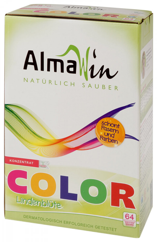 Ecocert által minősített öko mosópor koncentrátum színes ruhákhoz 30, 40 és 60°C-os mosáshoz.